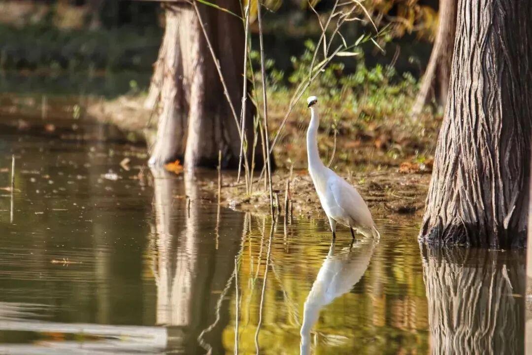 当午后阳光恰好时,整片水面便化作一面巨大的镜子。树的倒影比树本身更清晰,船仿佛悬空滑行在两个对称的世界之间。偶尔,一阵扑翅声从头顶掠过——那是来此越冬的候鸟,为这片静止的画面添上灵动的注脚。这一刻,你不仅是风景的观赏者,更成了画中人。