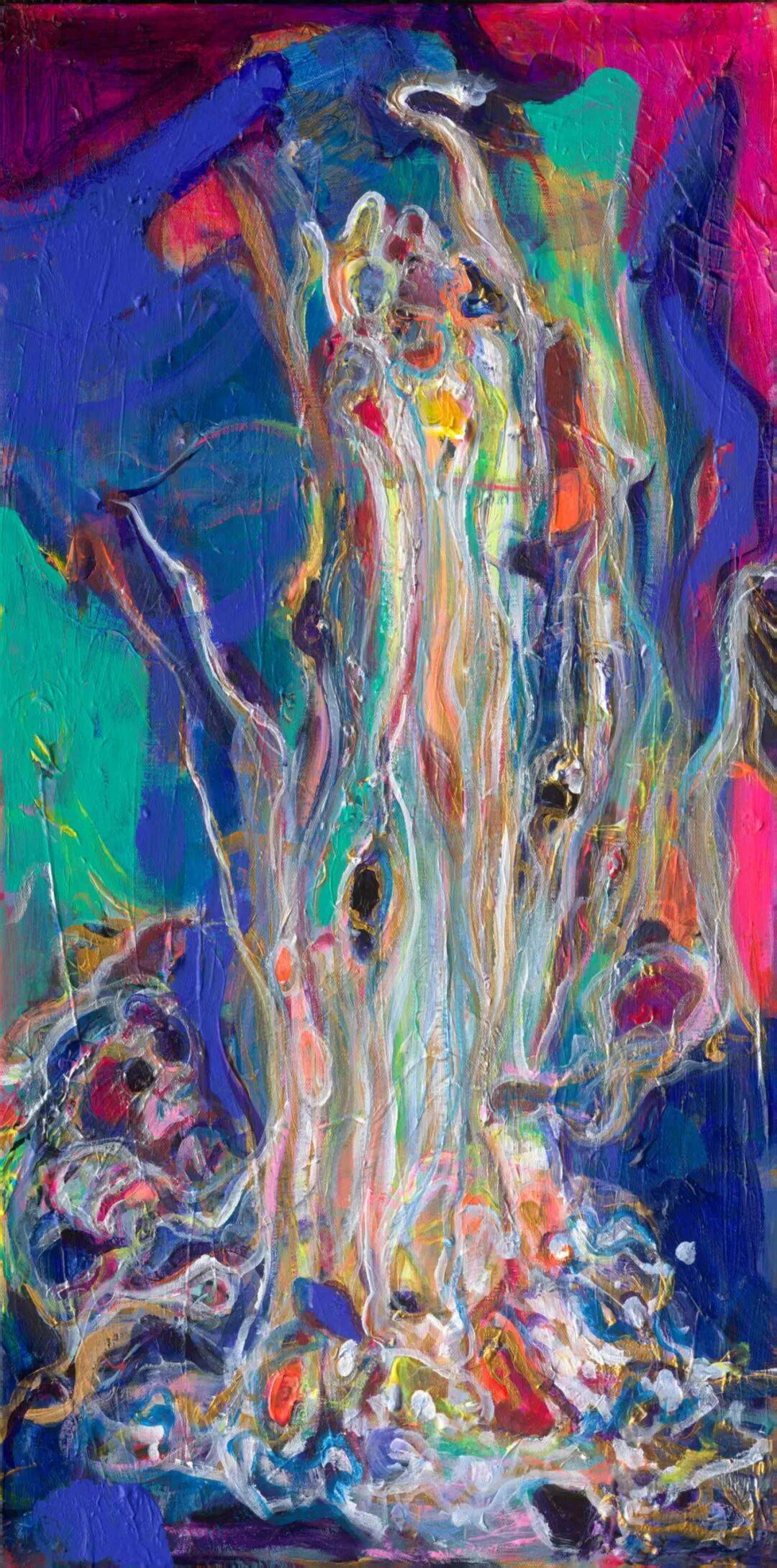娄申义,幽远,198x82cm,绢本丙烯,2025年