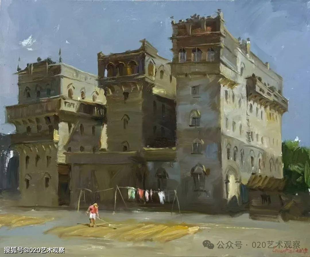 郑中凯《顺安碉楼群》80×60cm 布面油画 2021年