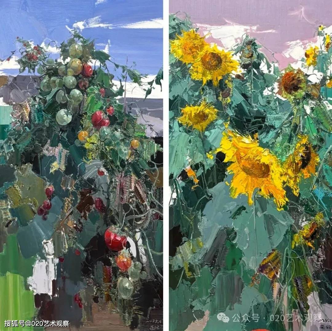 张延昭《西红柿与向日葵》140×70cm×2 布面油画 2025年