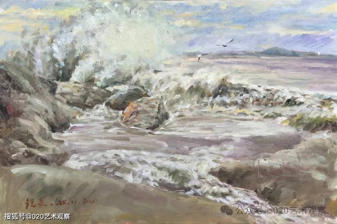 张延昭《拍岸》80×80cm 布面油画 2025年