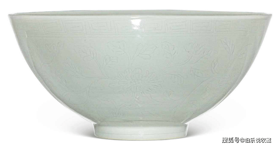 明永乐 甜白釉暗刻缠枝莲纹内模印蕉叶纹莲子碗