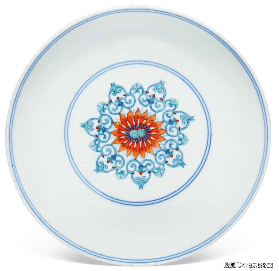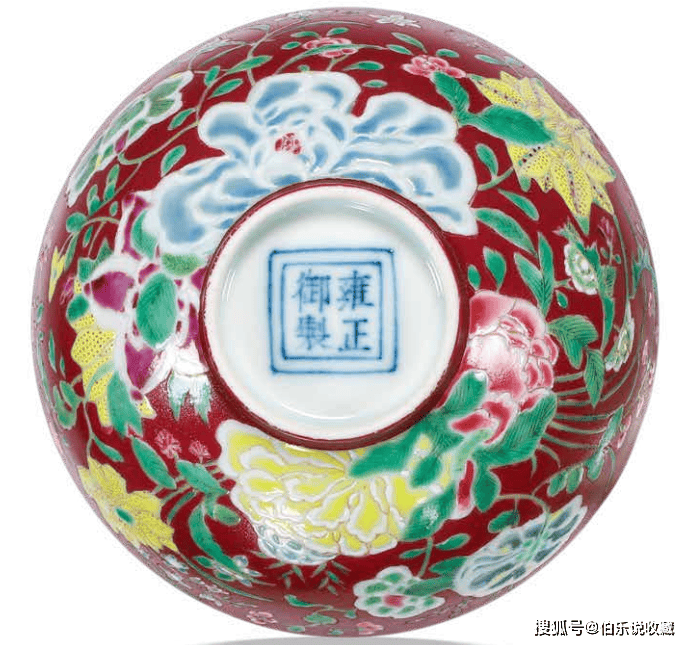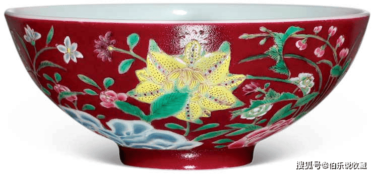 清雍正 珊瑚红地洋彩开光花卉纹茶圆