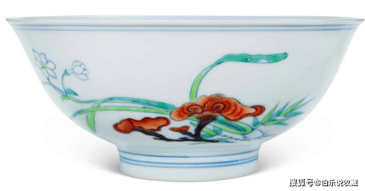 清雍正 御制斗彩灵芝祝寿花卉纹碗