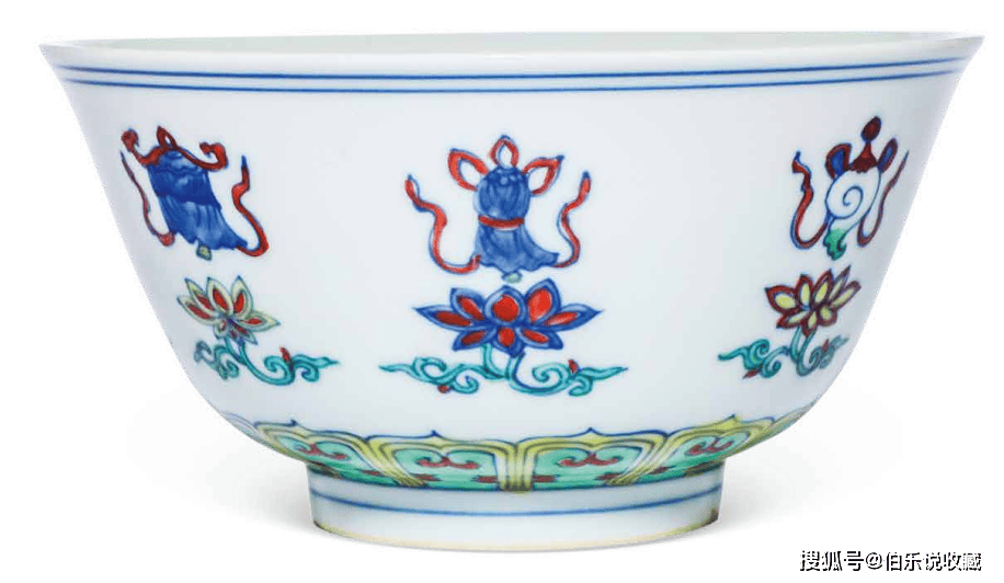 明万历 御制斗彩仿成窑莲托八吉祥纹宫碗