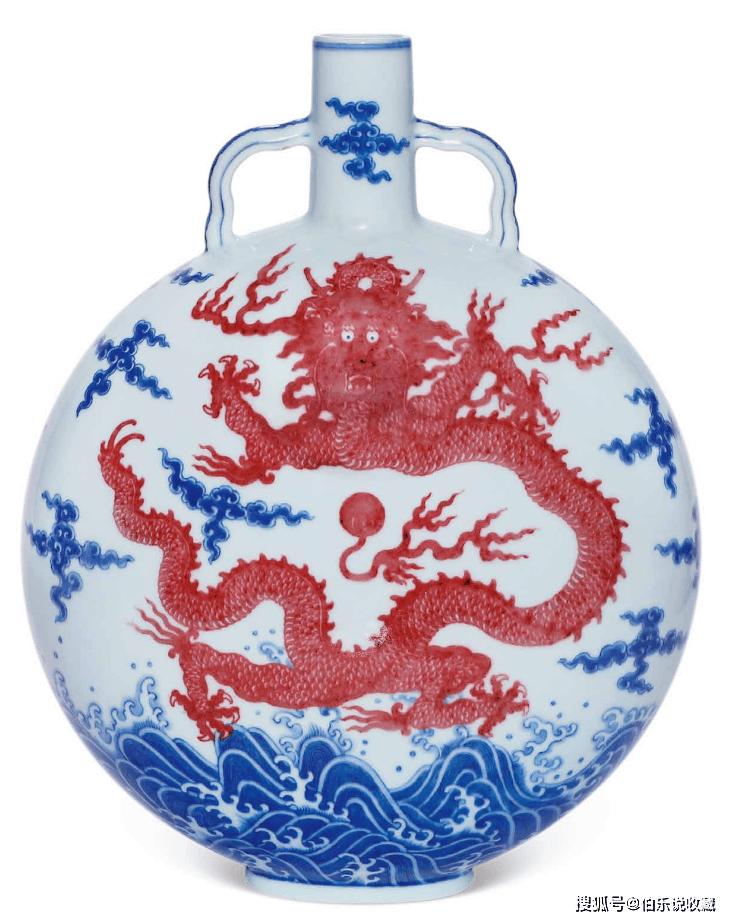 清乾隆 御制青花釉里红海水云龙纹抱月瓶