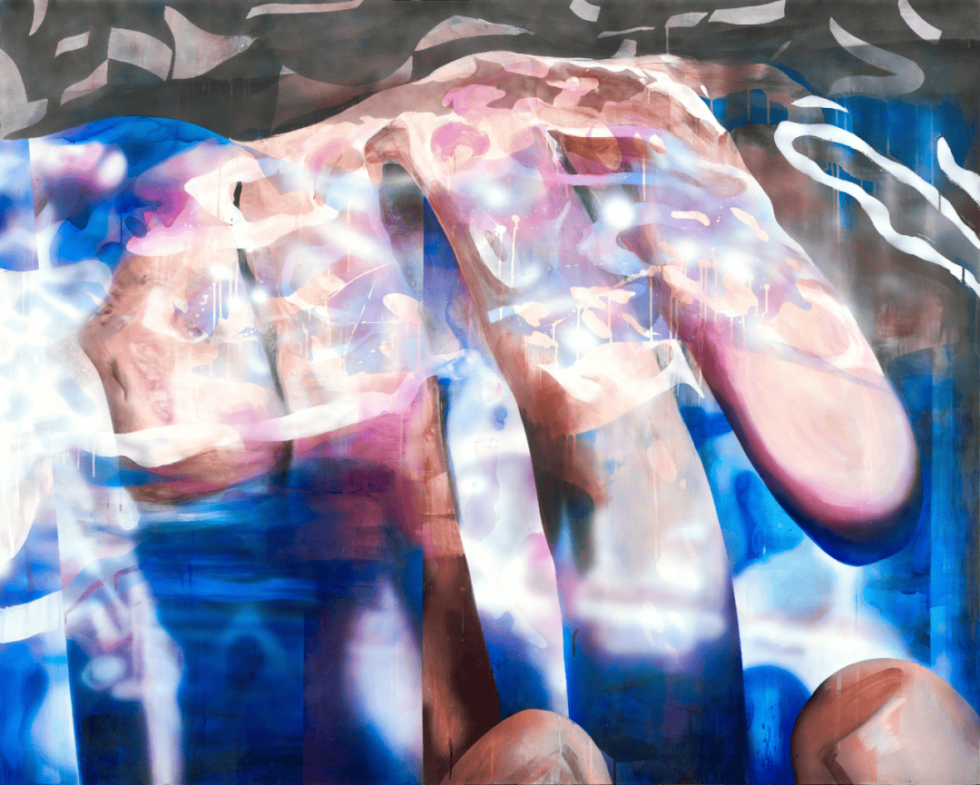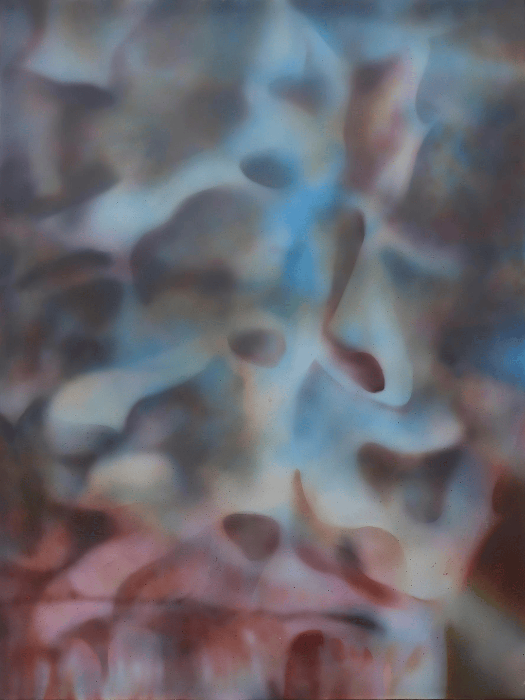 随着实践的深入,王昊阳对喷枪的认知升华为对“光影像素颗粒”的理解。喷枪通过压缩空气将微小颜料颗粒从细孔喷射而出,颜料物化投射的过程,与光学波粒二象性形成奇妙呼应。空中的颜料颗粒如同光的粒子,投射后不同颜色形成类似光波的视觉效果,浅色为“光”、深色为“影”,由此构建出光影二元对立的创作逻辑。这种理解使他的作品中呈现出类似摄影的光影质感。
