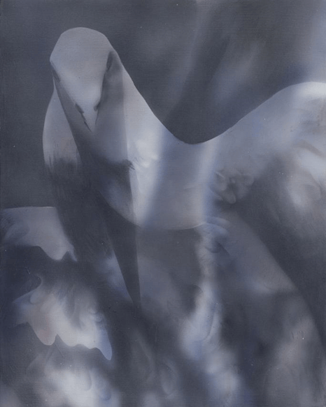 胶带与喷枪的结合,是王昊阳在技法探索中的重要突破。胶带作为辅助工具,能够通过遮挡将画面切割成不同的面,使面与面之间的界限清晰可辨,从而实现“易于量化的点与面”的视觉特质。在作品《皮毛》中,那些看似毛发的痕迹,实则是通过水彩留白胶处理而成:用笔蘸取留白胶扫出痕迹,待其干燥后撕去,留下的空白部分便形成类似毛发的视觉效果,与胶带塑造的平滑轮廓形成对比,丰富画面的层次与质感。