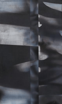 早期作品《呼吸》系列虽以黑色调为主,本质上仍是拼贴思维的延伸。王昊阳将硫酸纸与黑色卡纸裁成约10厘米的正方形,通过数量堆叠构建黑、灰、白渐变的视觉节奏。创作中,他偶然发现硫酸纸浸泡乳胶漆后会变为透明,使画面细节出现隐约的透明层次。竖条形分布与色彩渐变暗合呼吸的节奏,既如瀑布倾泻的水流,也呼应人的呼吸韵律。他在创作后对着作品冥想,彼时唯有呼吸清晰可感。这种内省状态,既与作品大面积黑色带来的静谧氛围相符,也与他内向的性格特质相呼应,实现了拼贴形式与内在精神体验的融合。