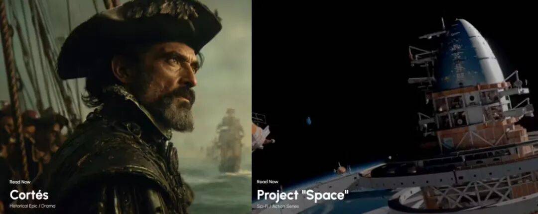 这也难怪Utopai Studio开局的两大旗舰项目《Cortés》和《Project Space》就瞄准了航海与科幻,前者以西班牙征服阿兹特克帝国的历史故事为蓝本,号称「史上最难拍史诗巨作」;后者世界观宏大,被形容为“《壮志凌云》遇见《世界大战》”。