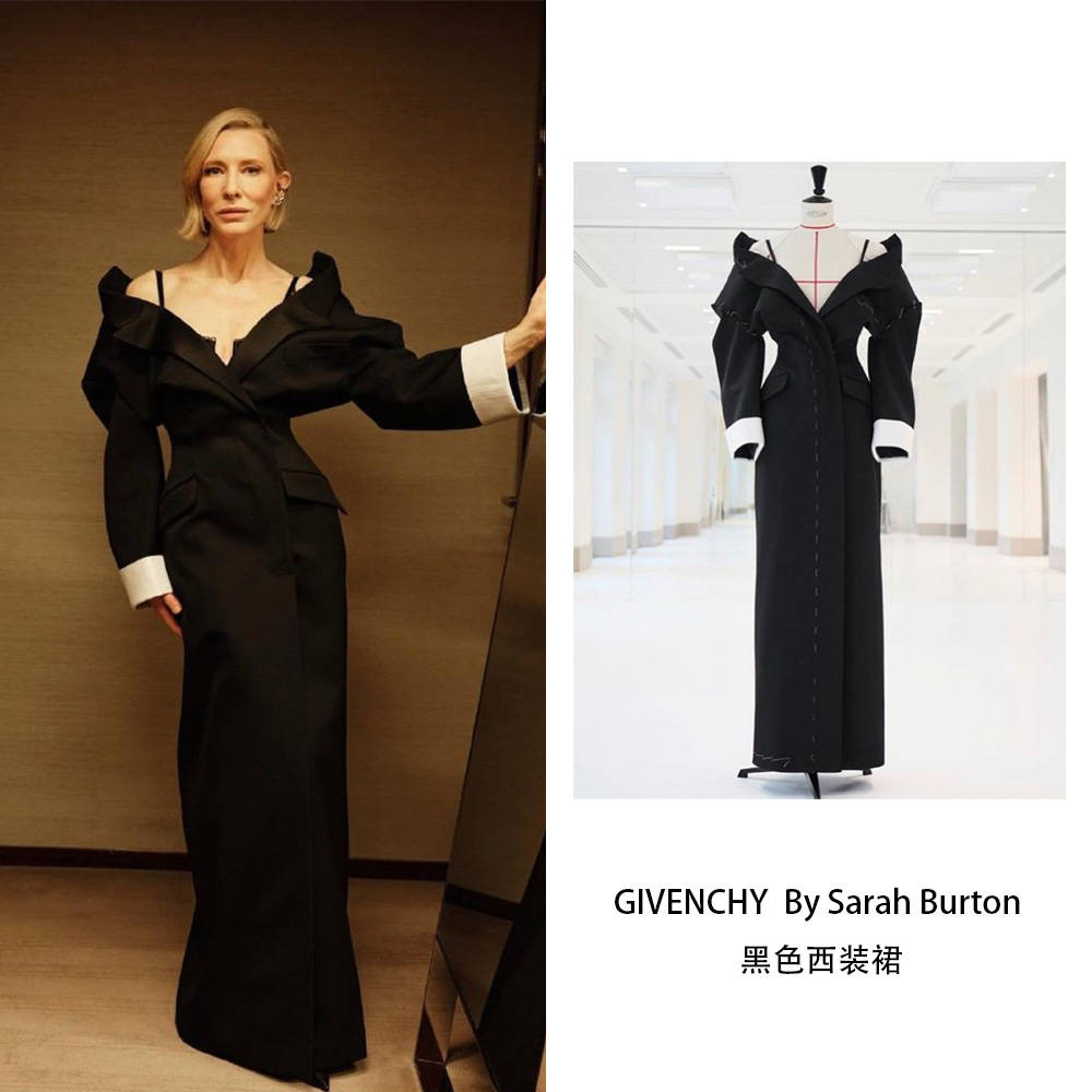 大魔王凯特·布兰切特与现在的纪梵希适配度太高了,西装面料“硬挺但垂顺”,撑得起大翻领的气场,又不会像板砖一样僵硬,走动起来是“自带风的高级感”,性感与气场兼具。
