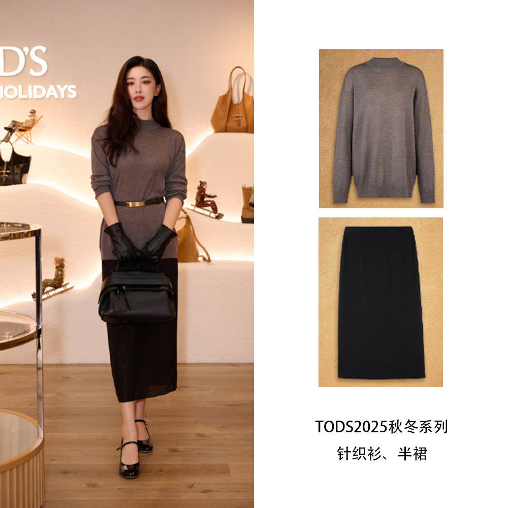 朱珠把这套TODS穿出了自己温柔知性的气质,但气场不减,细腰带是显瘦密码,搭配宽松的毛衣,更显身材曲线,皮手套是复古buff,把基础款穿出了“老钱风”的精致。