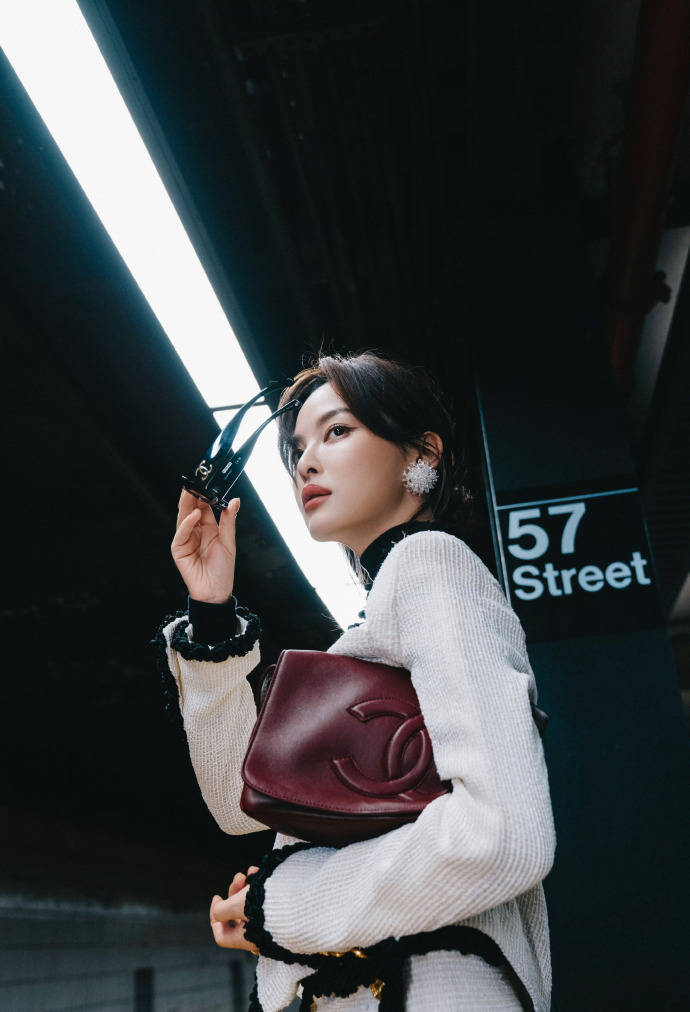 辛芷蕾出席香奈儿2026高级手工坊系列纽约发布会,身穿2026春夏系列斜纹软呢套装,冷艳又贵气,搭配墨镜,直接把“生人勿近”的时髦感焊在身上。红棕包是撞色小心机,在冷色调里砸出一点暖,高级又不单调。