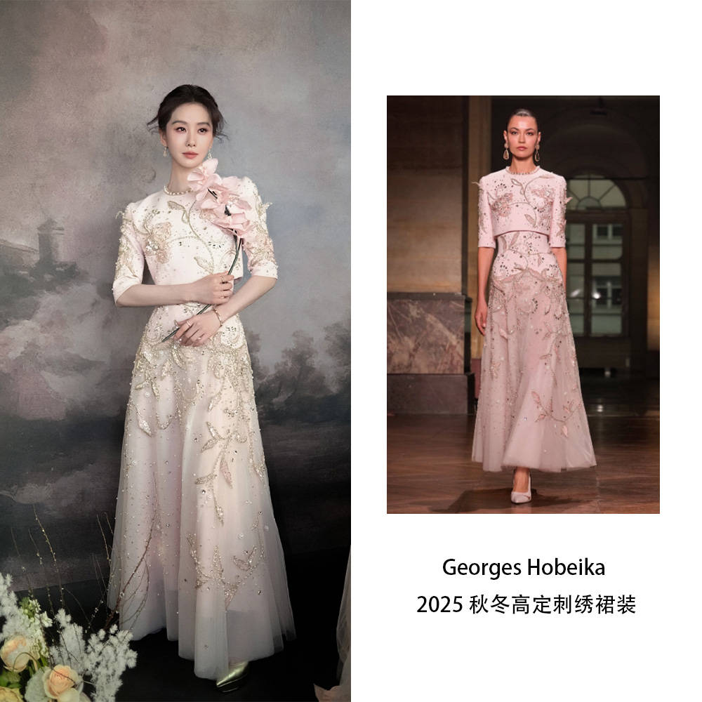 刘诗诗身着Georges Hobeika2025秋季高级定制系列亮相活动,温柔淡雅,刺绣和钉珠给足了华丽感,甜而不腻,是“轻透但有分量”的质感。