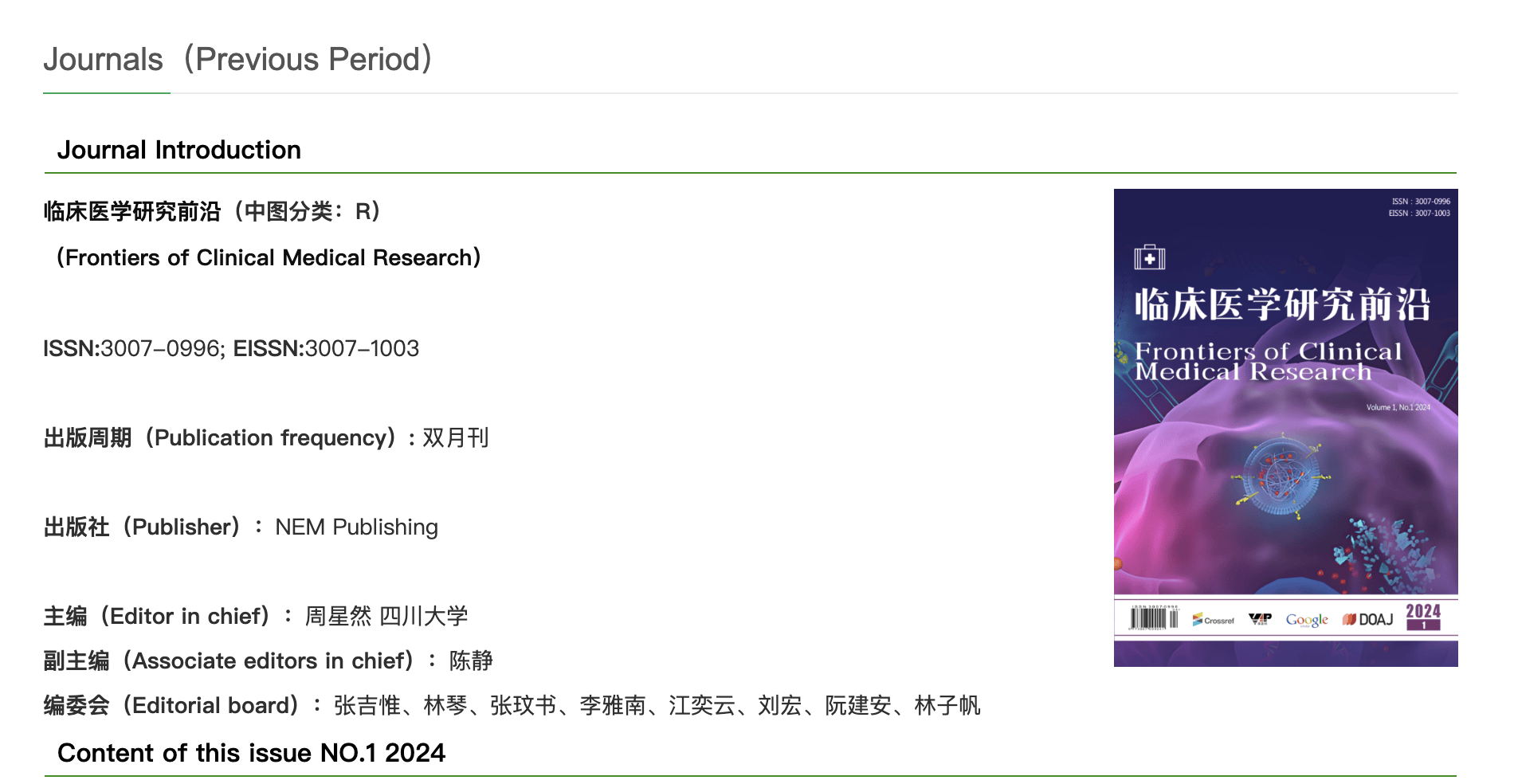 而在检索“张吉惟”时,新京报记者发现一本名为《临床医学研究前沿》(Frontiers of Clinical Medical Research)的期刊,其编委会名单为“张吉惟、林琴、张玟书、李雅南、江奕云、刘宏、阮建安、林子帆”。