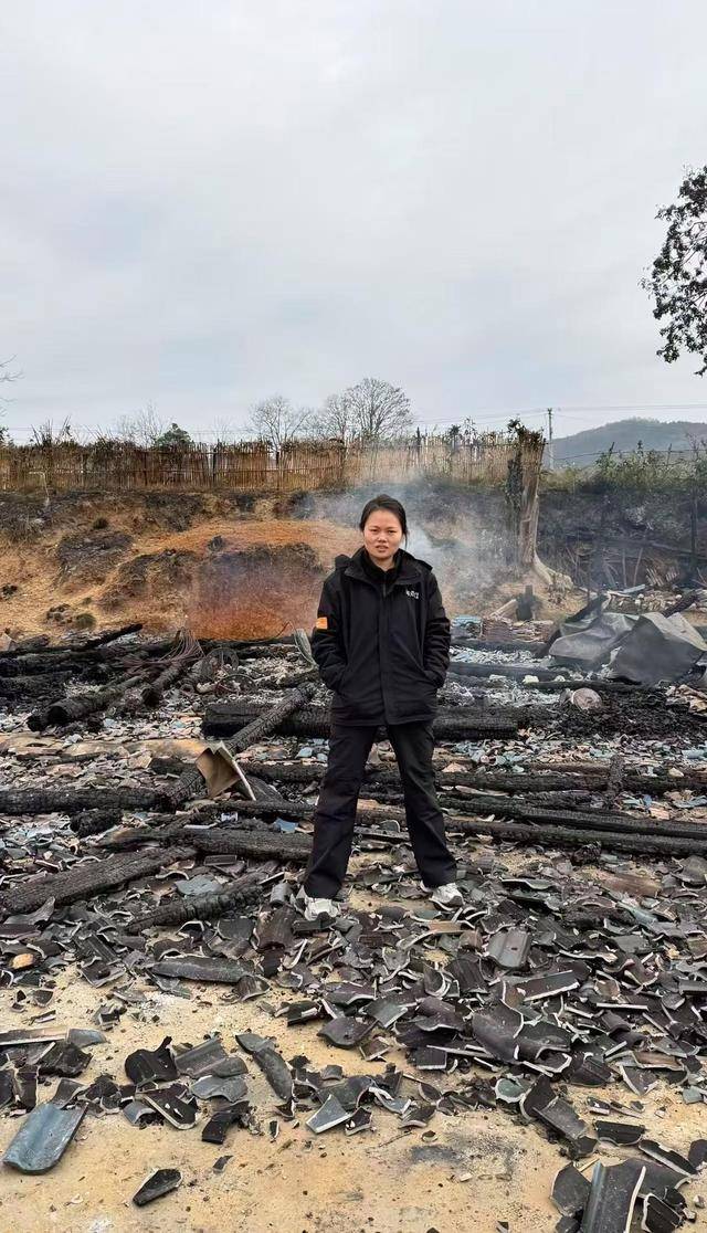 12月3日,一位湖南怀化的网友在社交平台发布视频称,其父母在农村的房子因为一场意外的大火被烧毁,她赶到时房子已经化为灰烬,但她并没有哭泣,而是淡定地站在废墟中拍了一张全身照,表示“生活总爱跟我开玩笑,还好我爱笑”。