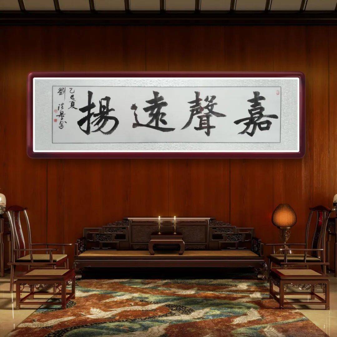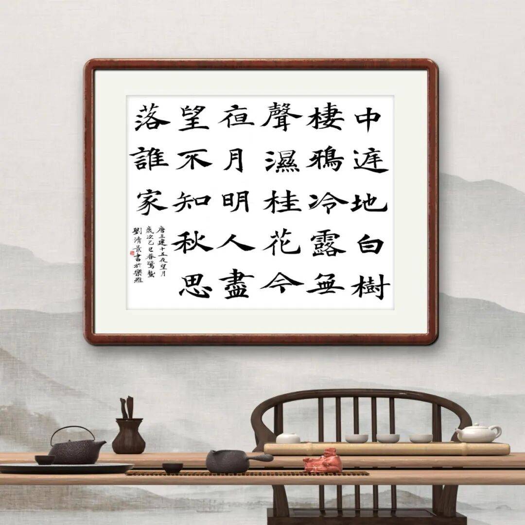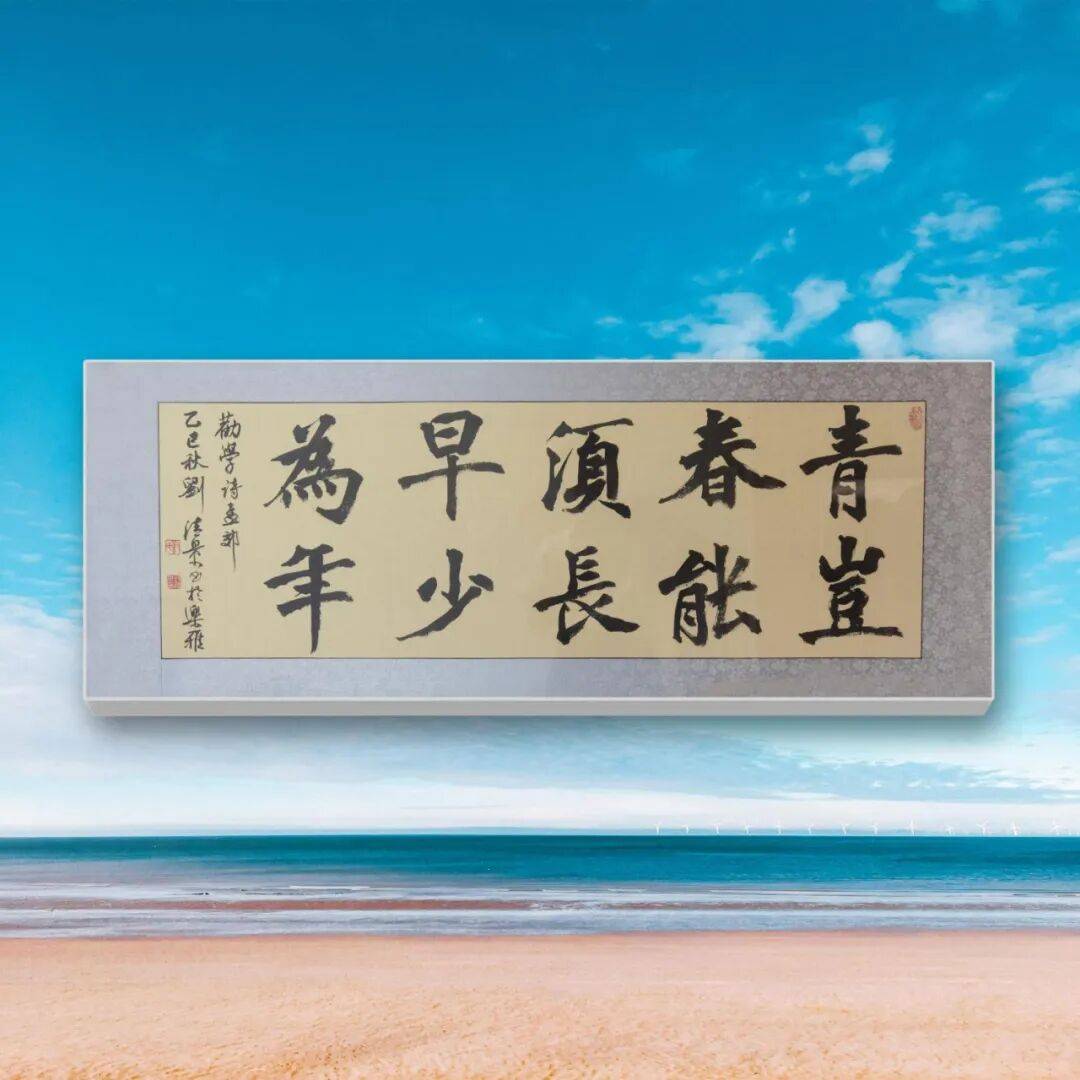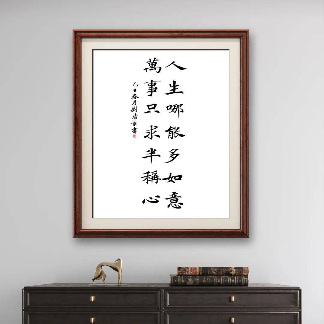 在艺术追求上,刘清景先生始终坚守“笔墨当随时代”的理念,在传承传统的基础上不断创新。他认为,传统书法艺术并非一成不变的教条,而是需要在时代的发展中不断赋予新的内涵与活力。因此,他在深入研习传统经典的同时,注重观察生活,感受时代精神,将时代的审美特质融入书法创作之中。他的作品,既保留了传统书法的艺术精髓,又具有鲜明的时代气息,打破了传统书法与现代生活的隔阂,使书法艺术能够更好地融入当代社会。在形式上,他不仅创作了大量的中堂、条幅、对联等传统形制的作品,还尝试将书法与现代设计相结合,创作了一些具有现代审美特质的书法作品,拓展了书法艺术的表现空间。在内容上,他除了书写传统经典文本之外,还创作了一些反映时代精神、弘扬正能量的作品,使书法艺术能够更好地服务于社会,传递正能量。
