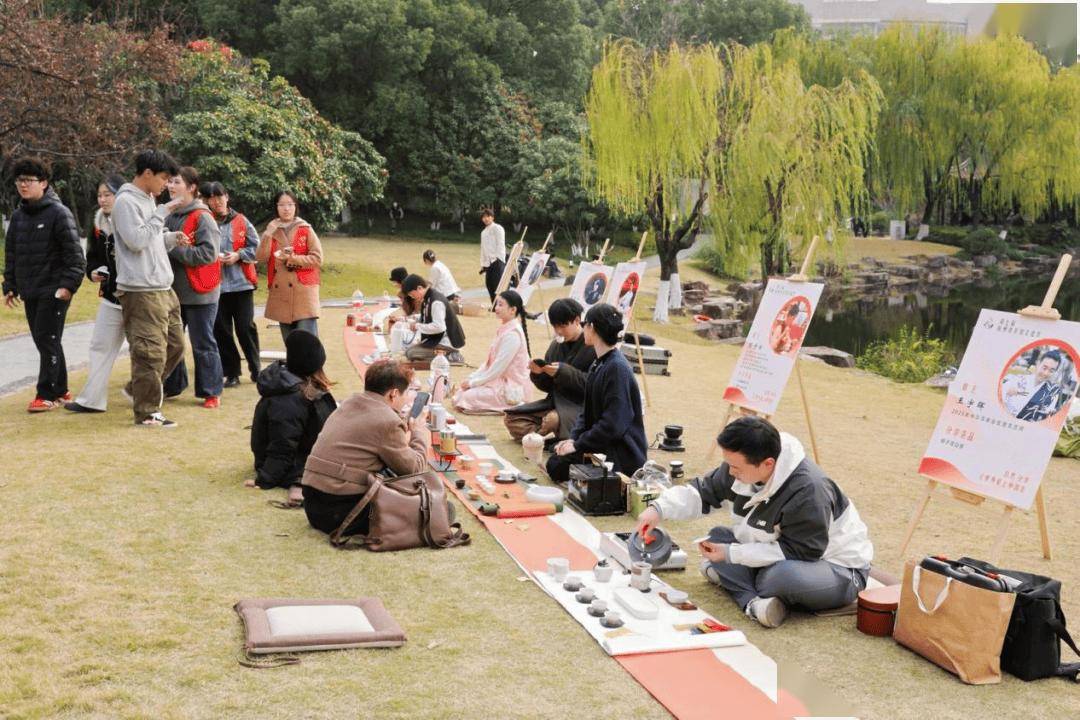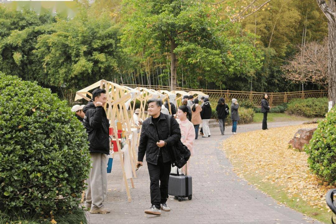 启动仪式还包含了“九溪茶山徒步”旗帜交接、闻莺书画院现场创作并赠送墨宝等环节,将动态体验与静态风雅完美结合。随后,现场嘉宾与市民共同参与了“杏”好相遇市集、主题茶会、书画展示等游园体验活动,在冬日暖阳中沉浸式感受茶生活的美学。