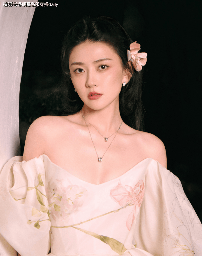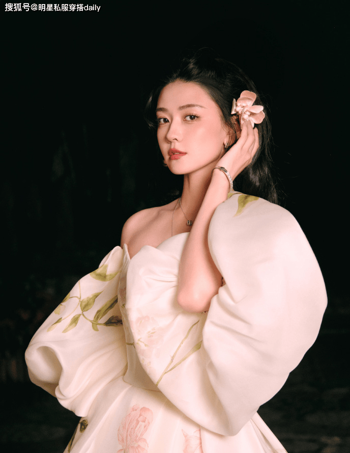 梁洁的这套造型之所以极具古典美感,发型与头饰的搭配堪称点睛之笔。她选择的公主半扎发,将头顶部分头发轻轻束起,余下的发丝自然垂落,既保留了长发的温婉,又通过半扎的设计增添了灵动俏皮感,完美契合 “公主风” 的核心气质。更让人眼前一亮的是鬓边的粉色花朵簪饰,鲜嫩的粉色与乌黑的发丝形成鲜明对比,既提亮了造型色彩,又自带 “花簪云鬓” 的古典意境,让整体造型瞬间充满画面感。