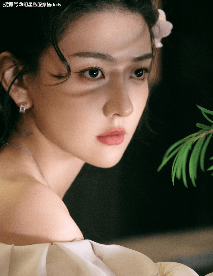 这种将古典簪花与现代半扎发结合的思路,既避免了纯古典发型的厚重感,又打破了现代发型的单调,让梁洁的温柔亲和力与古典气质完美融合。对于喜欢古典风的女生来说,这种 “半扎发 + 小巧簪花” 的组合值得借鉴,无需过于繁复的装饰,一朵鲜花或精致簪子就能提升造型的古典韵味。