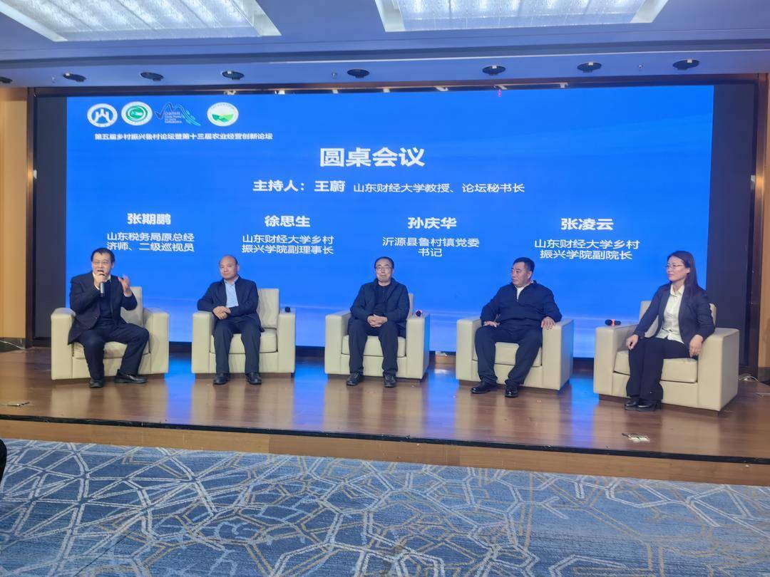 山东税务局原总经济师、二级巡视员张期鹏,山东财经大学乡村振兴学院副理事长徐思生,山东财经大学乡村振兴学院副院长张凌云,鲁村镇党委书记孙庆华参加圆桌论坛并作交流。