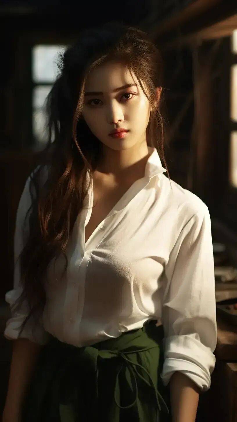 她的面容,更是野性之美的极致展现。高挺的鼻梁,如同山峦般挺拔,赋予了面部强烈的立体感。那深邃的眼眸,犹如夜空中最璀璨的星辰,闪烁着神秘而迷人的光芒。眼神中,既有对未知世界的好奇与探索欲望,又有着一种与生俱来的霸气与冷峻。当她凝视镜头时,仿佛能穿透那层薄薄的相纸,直抵观者的灵魂深处,让人不由自主地沉浸在她所营造的世界里。而那微微上扬的嘴角,似笑非笑,带着一丝玩味与挑衅,让人捉摸不透她内心的真实想法。