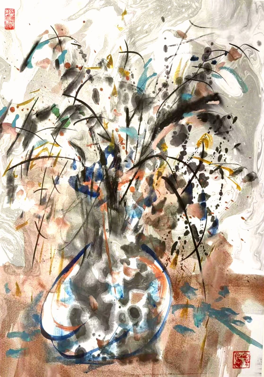 孙永印的绘画本真,首先体现在对传统中、西画的传承与敬畏,在多年的刻苦磨练中,打下了坚实的基本功,掌握了很高的造型能力。他主张 “以自然为师,以心性为笔;不逐名利、只亨过程;不为'画得像'、只为'画得爽';不求完美、从心所欲”。他的作品多样,绘画手法灵动多变,不拘一格,兼容多元表现形式,落笔自有章法又不囿于成规。也没有迎合市场的艳丽色彩,而是在朴素的笔墨色彩中传递对自然的热爱。这种创作不追求速成,不急于求成,而是在反复打磨中沉淀心性,正如他所言:“绘画是一辈子的事,急不得,更功利不得,唯有静下心来,才能触摸到艺术的本真。”