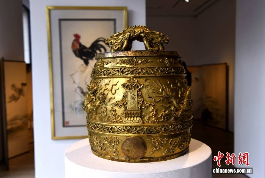 当地时间12月6日,巴黎佳士得亚洲艺术周拉开帷幕,展示即将拍卖的各种珍品。图为其间展示的清乾隆年间御制铜鎏金交龙钮云龙赶珠纹“倍南吕”编钟。中新社记者 李洋 摄