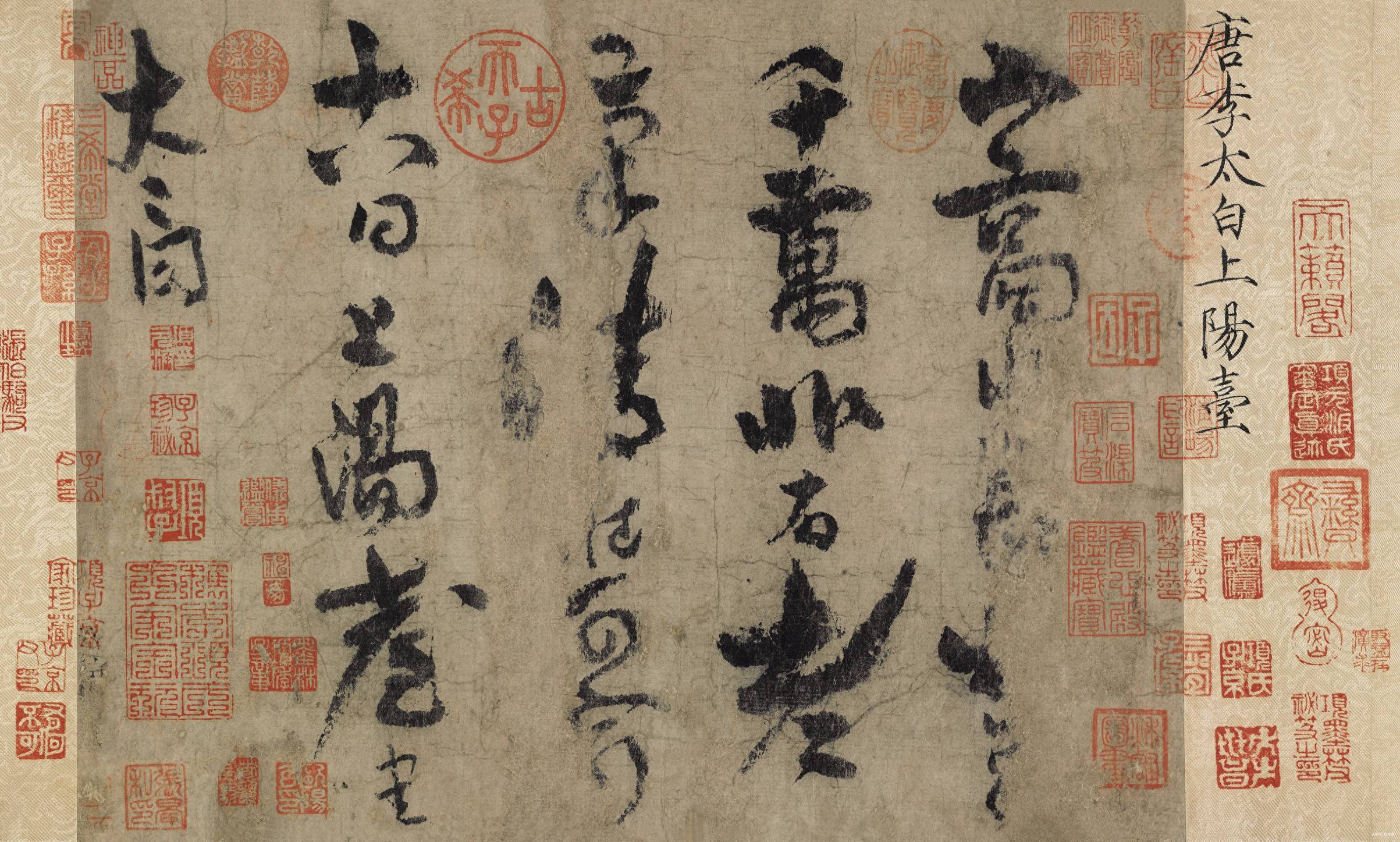 《上阳台帖》中的李白字如行云流水,笔画飞扬,给人一种大气磅礴的感觉,仿佛能够将天下的气象都收纳于纸上,展现了他在与官场断绝关系后那份超然洒脱的心境。虽然只有短短的16个字,却因其是李白唯一存世的书法真迹,显得格外珍贵。有人猜测,李白在创作《上阳台帖》时,可能也喝了些酒,否则杜甫为何会说:李白斗酒诗百篇,长安市上酒家眠。天子呼来不上船,自称臣是酒中仙。