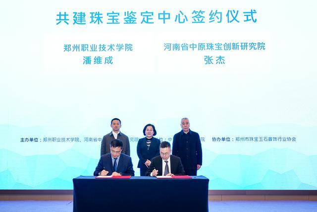 签约共建珠宝鉴定中心:郑州职业技术学院校长潘维成与河南省中原珠宝创新研究院院长张杰共同签署协议,共建珠宝鉴定中心。该中心将发挥双方优势,为培育钻石产业提供高质量的技术支撑和人才保障。