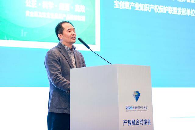 郑州市教育局总职业指导师张云峰在致辞中强调,教育局始终坚持“教育赋能产业、产业反哺教育”的理念,聚焦培育钻石等战略性新兴产业需求,构建了从职业教育到高等教育、从技能培养到科研创新的全链条人才支撑体系。