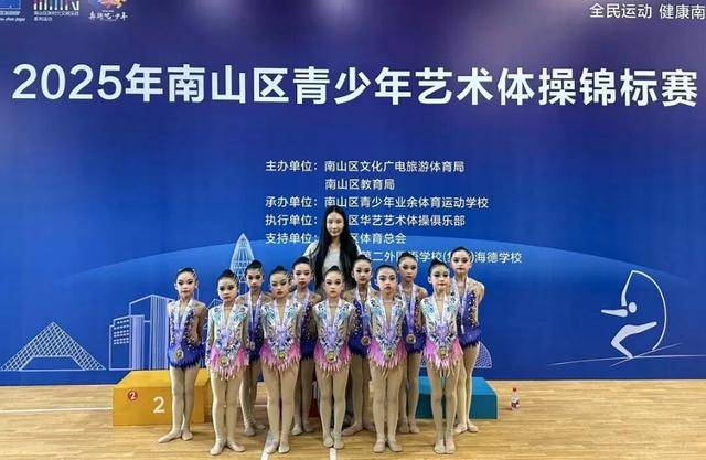 南油小学艺术体操社团首次参加省级与区级赛事即创下辉煌战绩。在近期举行的2025年广东省大众艺术体操联赛(南山站)及2025年深圳市南山区青少年艺术体操锦标赛中,该校队伍在指导老师张可的带领下,凭借出色表现,共夺得3枚金牌与1枚银牌。其中一枚金牌更荣膺南山区特等奖,实现“双赛夺魁”。