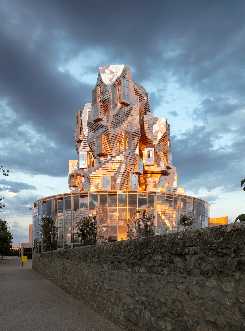 Luma Tower / LUMA Arles 是弗兰克·盖里为法国 LUMA 基金会设计的文化塔楼,也是阿尔勒艺术园区的核心建筑之一。建筑由不规则的金属板块覆盖,立面呈现碎片化、反射光线的效果,仿佛光与影在塔身上流动,象征创新与创意的活力。