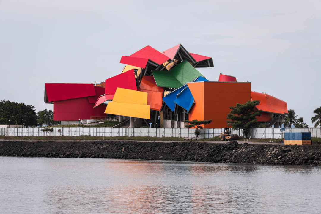 巴拿马生物博物馆(Biomuseo)位于巴拿马城,建筑采用多彩的屋面与动态曲线,形象地呈现中美洲热带生态的多样性与活力。博物馆整体由八个互相错落的展厅组成,每个展厅通过鲜艳的色彩和不规则体量传达特定的生态主题,同时大量引入自然光,营造明亮、开放的展览空间。