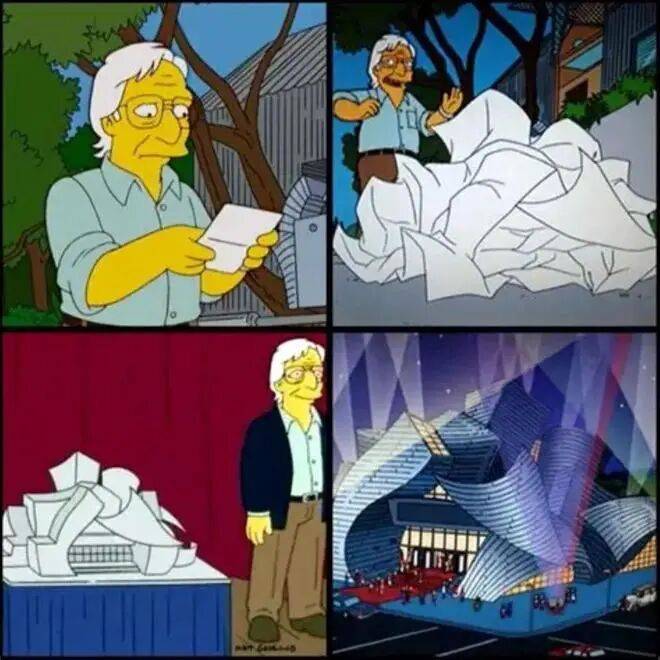 在公众文化中,他也留下过轻松的一面,曾在《辛普森一家》中客串,还成为纪录片《弗兰克·盖里的素描》的主角。