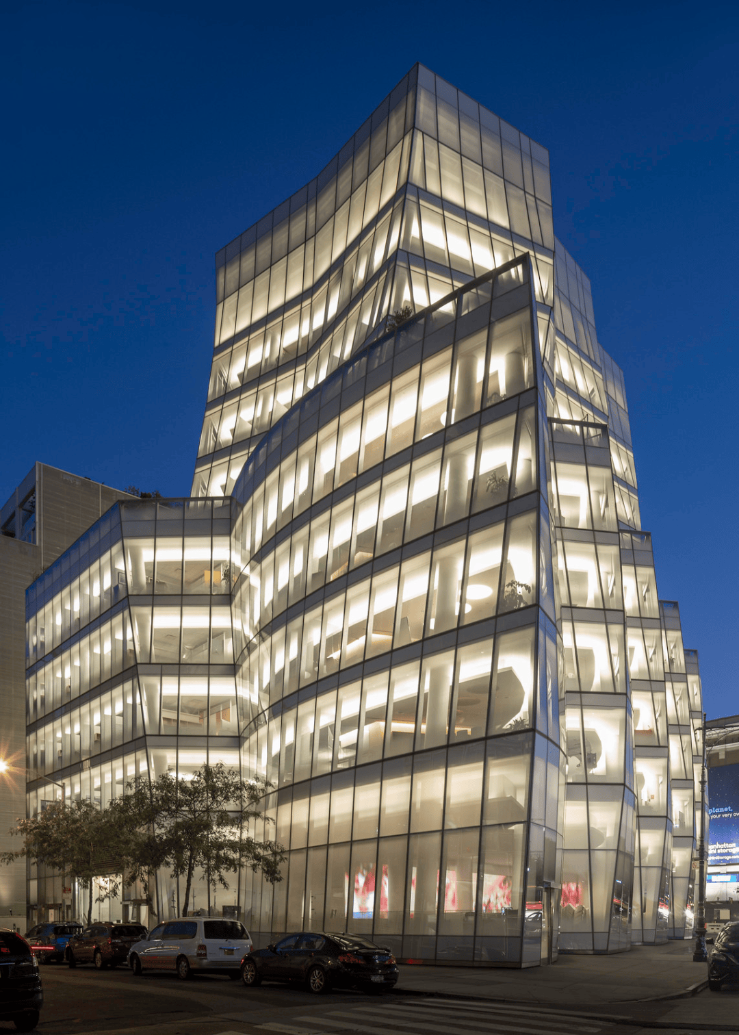 这是盖里在纽约的重要作品之一,建筑以玻璃和流动造型代替传统写字楼直线外观,展示他将雕塑语言延伸到都市办公建筑的尝试。