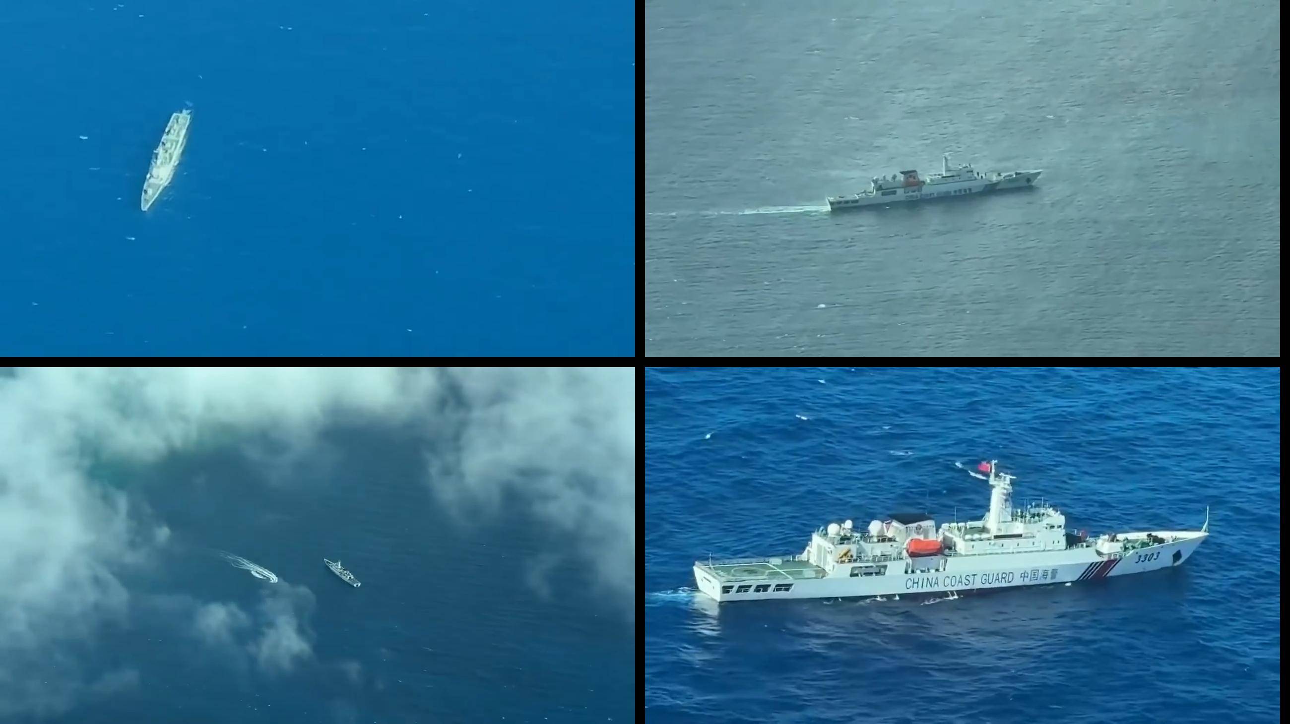中国海军军舰与海警船在黄岩岛附近(菲记者拍摄画面)
