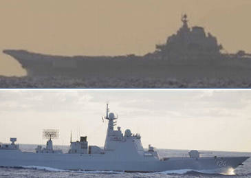 日本自卫队拍摄到的我辽宁舰和开封舰日本防卫省统合幕僚监部