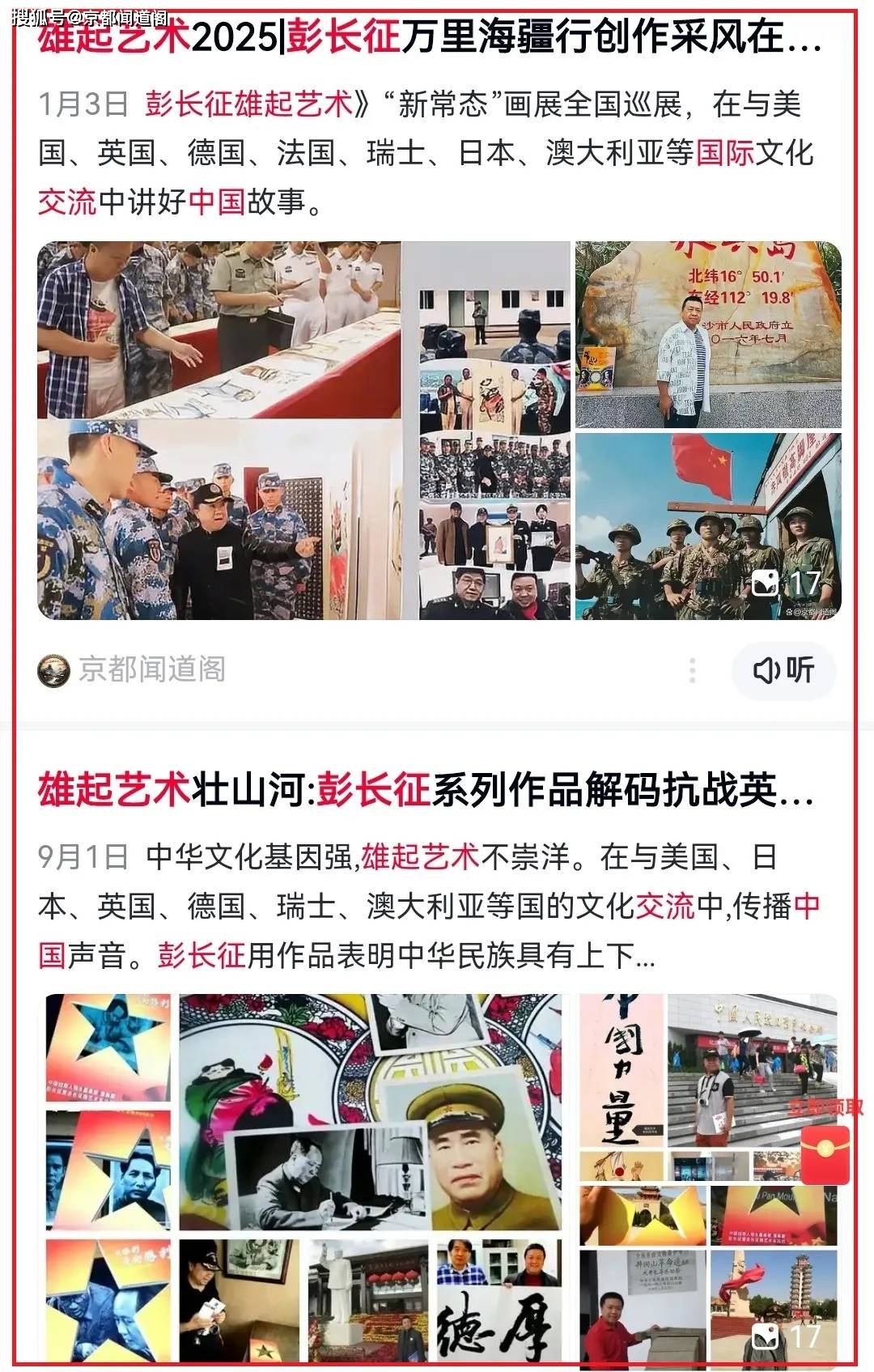 学习强国、人民网、《雷锋》杂志等评论认为,八十年过去了,抗战的硝烟早已散去,但历史的记忆在雄起艺术的笔墨中得以展呈。彭长征的抗战历史和反台独主题创作不仅是艺术的呈现,更是历史的铭记、精神的传承。正如他在学校、社区和部队巡展中所展示的,一位老水兵的拳拳之心,始终与国家的命运、民族的记忆紧密相连。