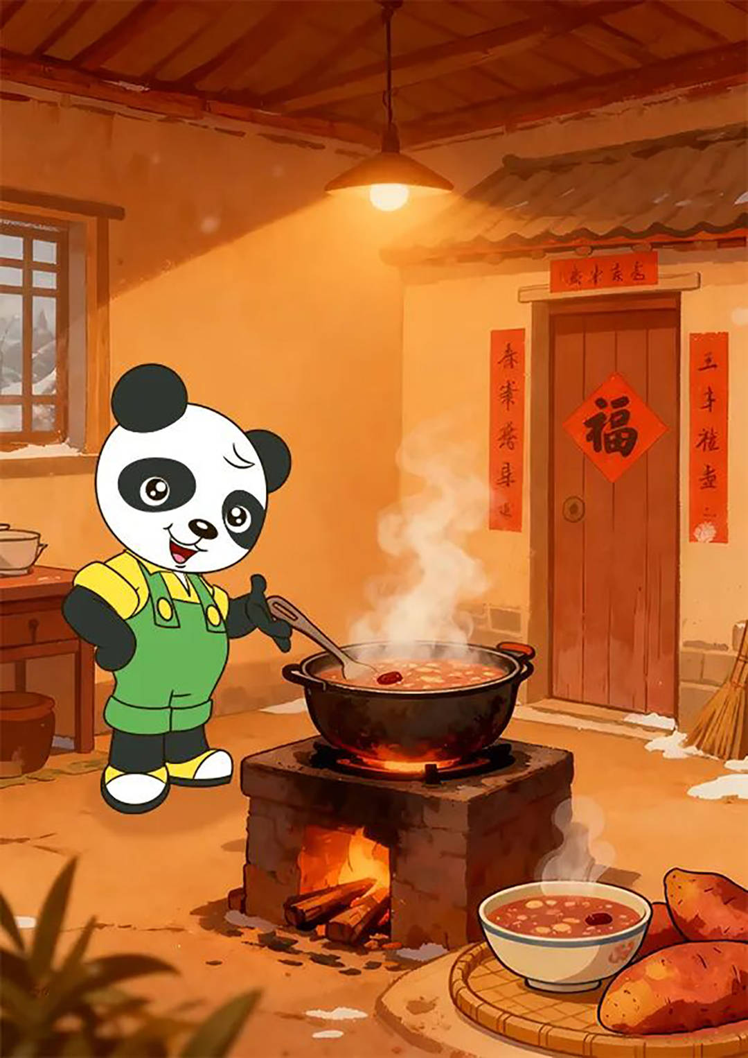 鲁北民间有大雪喝红薯粥的习俗。当地俗语云“碌碡顶了门,光喝红黏粥”,意思是天冷不再串门,只在家喝暖乎乎的红薯粥度日。