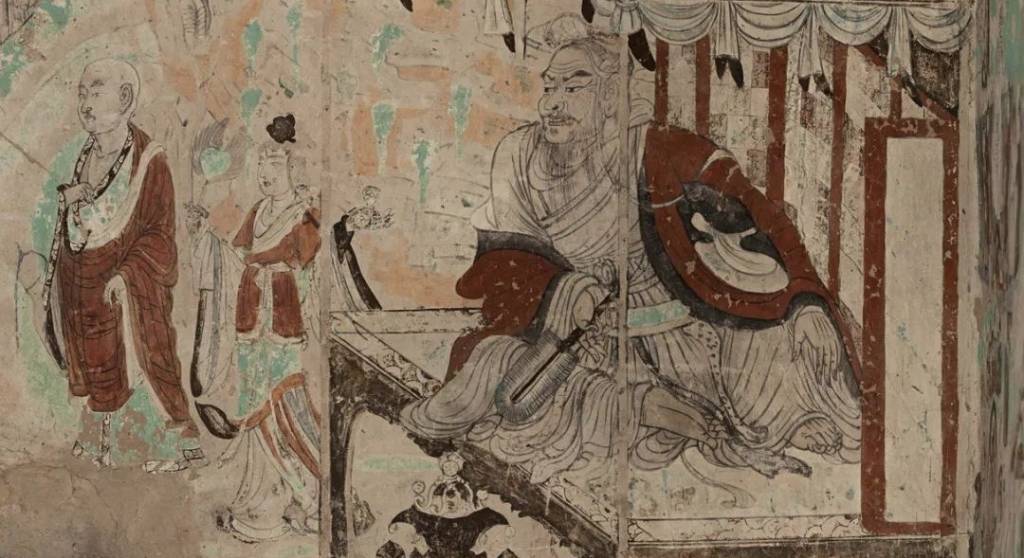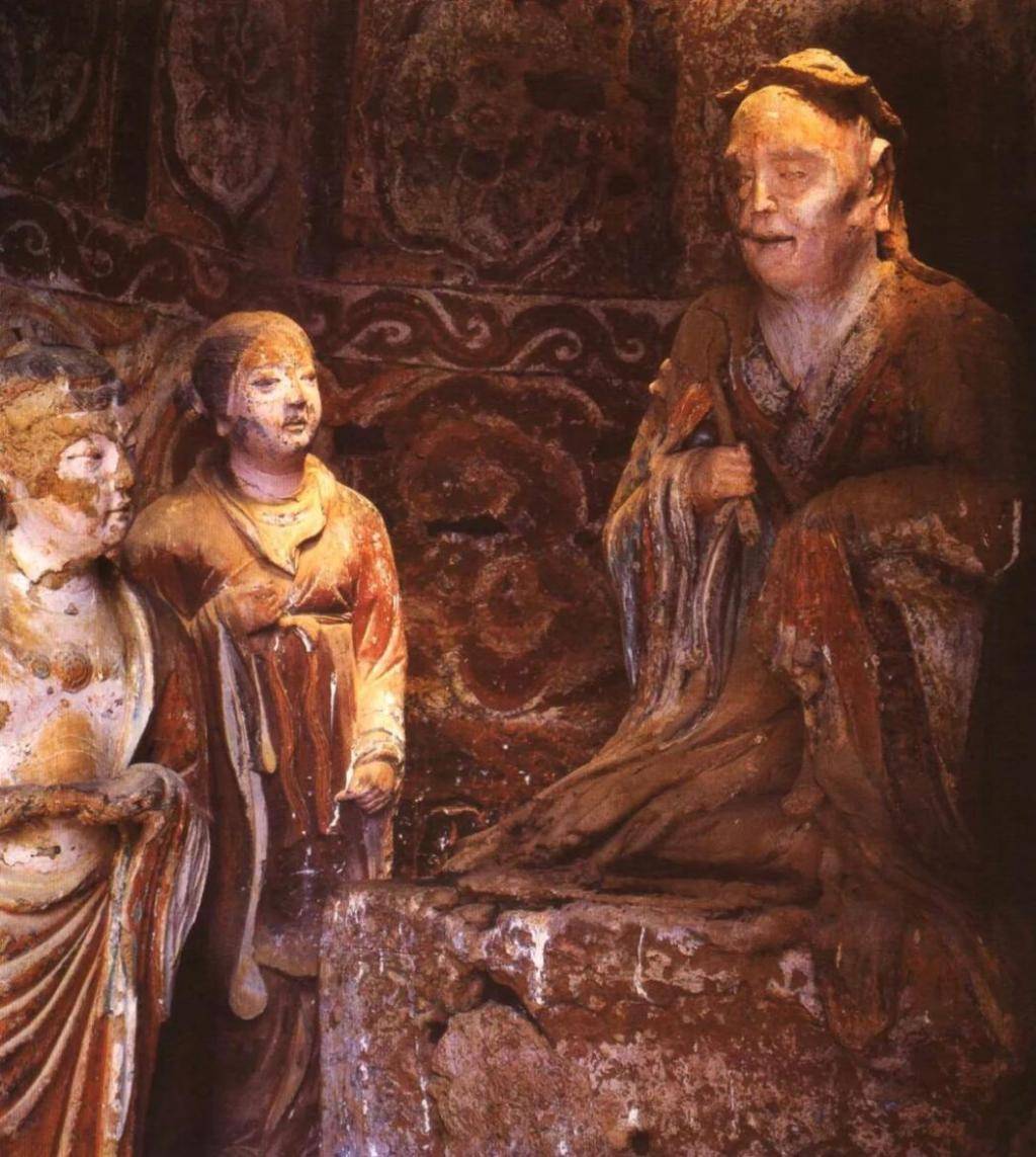 麦积山第4窟前廊左耳龛的维摩诘与侍女