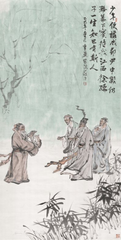 本次“三苏与巴蜀”书画文献展中,便有多幅作品,生动映照着这段渊源。如蒋才所绘《忆初识张方平》,讲的是三苏出蜀前拜访张方平的事迹。张方平曾任益州知州,对三苏有知遇之恩、提携之情。