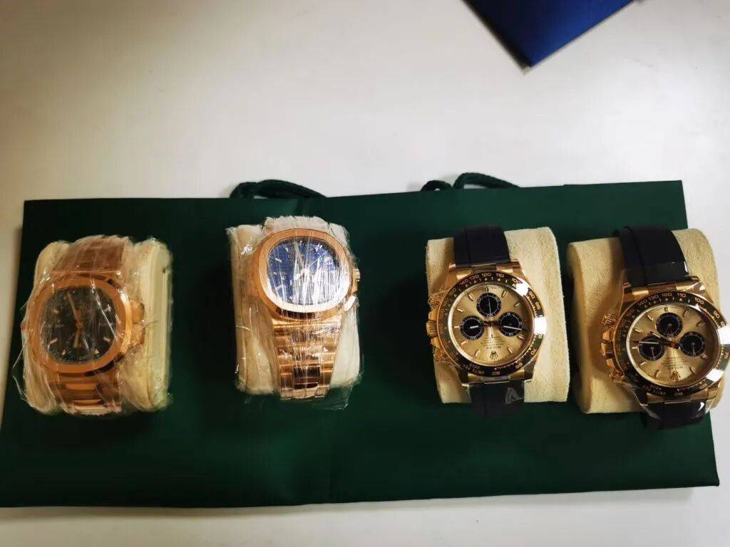 刘女士寄出的4块名表。上海市公安局 供图