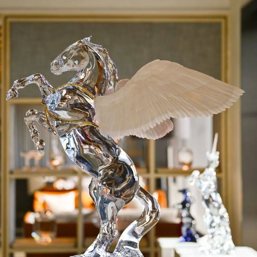 值此合作之间,Baccarat 巴卡拉于11月22日及23日,在水晶光影酒廊荣耀呈献「奥林匹斯飞马」限量雕塑,由藤原浩设计的多边形飞马雕塑及数款典藏作品。生动展现了荟萃传承数世纪的匠心雕刻技艺及栩栩如生的骏马线条,表达了生肖马勇于开拓、追求自由的勇气与精神。在纯净水晶的璀璨光辉下,Baccarat巴卡拉以一系列骏马典藏作品致敬中国传统生肖,以晶彩鸿运,开启骏跃新章。