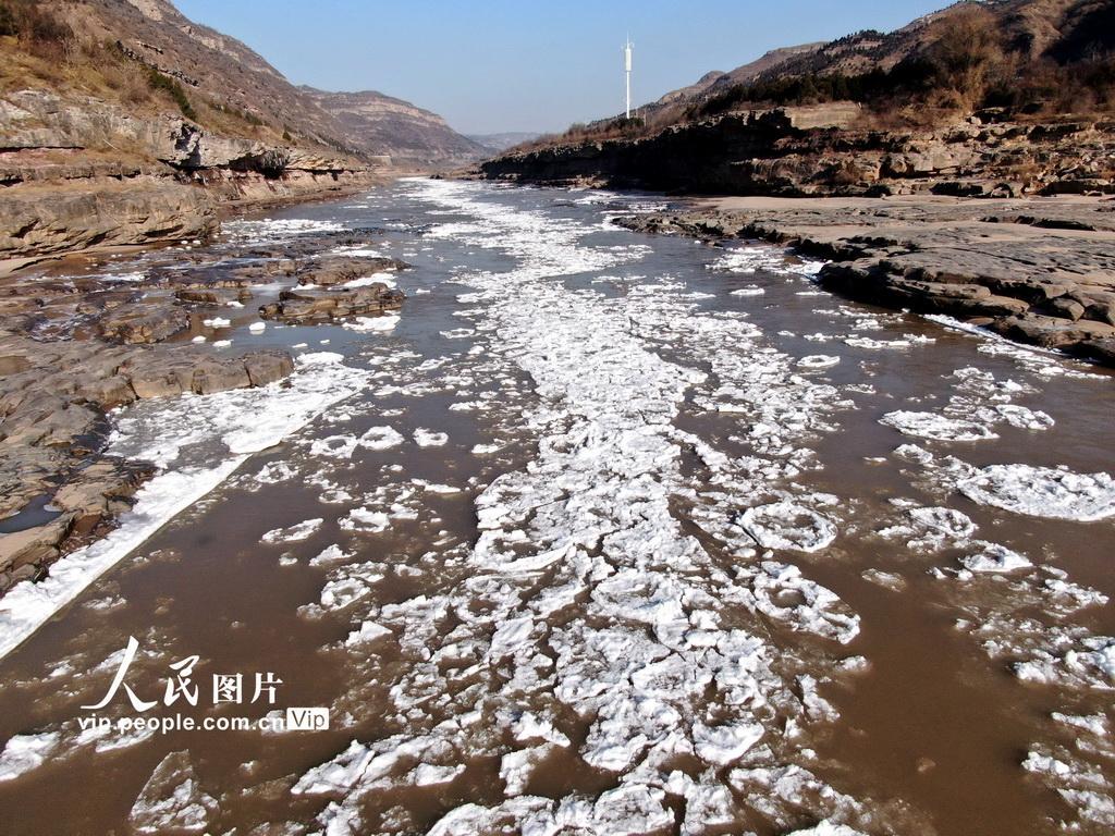 2025年12月5日,在位于晋陕交界的黄河壶口瀑布下游十里龙槽拍摄的流凌景观。