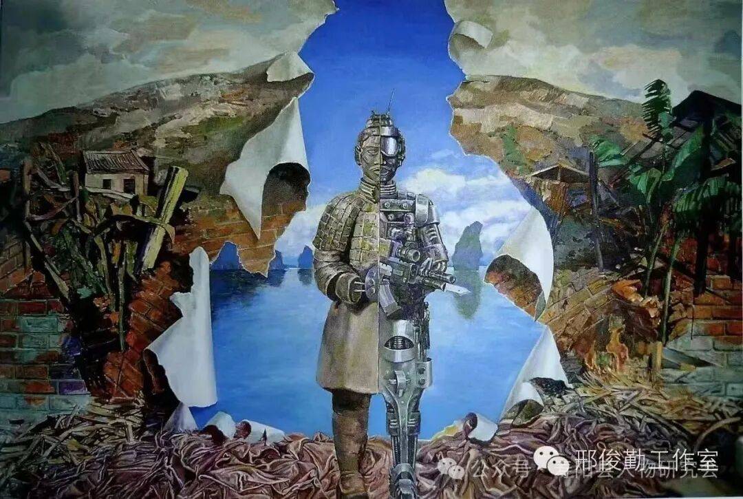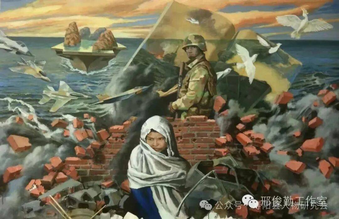 他的画面常常将军事题材作为创作因素,通过静止的场景反映出当代世界语境下,处于战争或笼罩在战争预警下的社会风景,从而使折射出宏大政治、军事背景下,人作为单独个体的脆弱无援,以及人在成为战争的参与者时,同时处于攻击与被攻击下的矛盾状态。他提供给观者一种全新的角度去看待身边的事件和熟悉的图像,将具有代表性的“经典样式”以后现代主义的方式加以挪用改造,这也是作为艺术家充满哲思的视觉艺术逻辑演化,为和平、为艺术、为文化做出卓越贡献。诗曰: