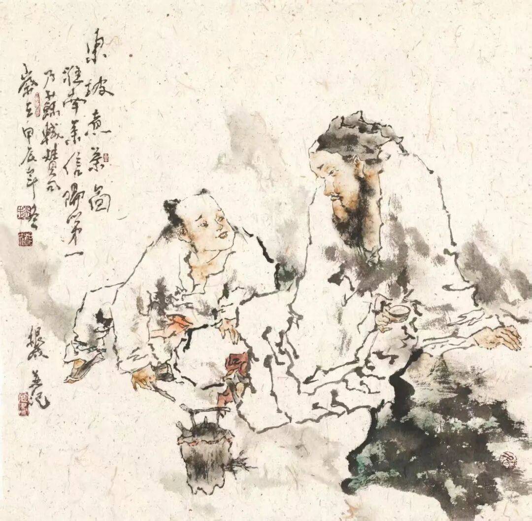 根成先生的画,由能而妙,由妙而神,由神而近乎逸,一路攀援,台阶而进。他早年曾专事工笔,其《白圭造像》、《夜读春秋》、《东坡品茗图》等工笔画,足见用心之精,功夫之深。这为他后来从事写意画的创作打下了坚实的基础。本人认为,能品是中国画的基础,也是中国绘画艺术的门径。不能而求妙品、神品、逸品是不由门而欲登中国艺术之殿堂,非钻穴打洞而不可得,难免陷入怪诞之途,而仅守于能品,或以能品为能,则难成大器,终也画匠而已矣。