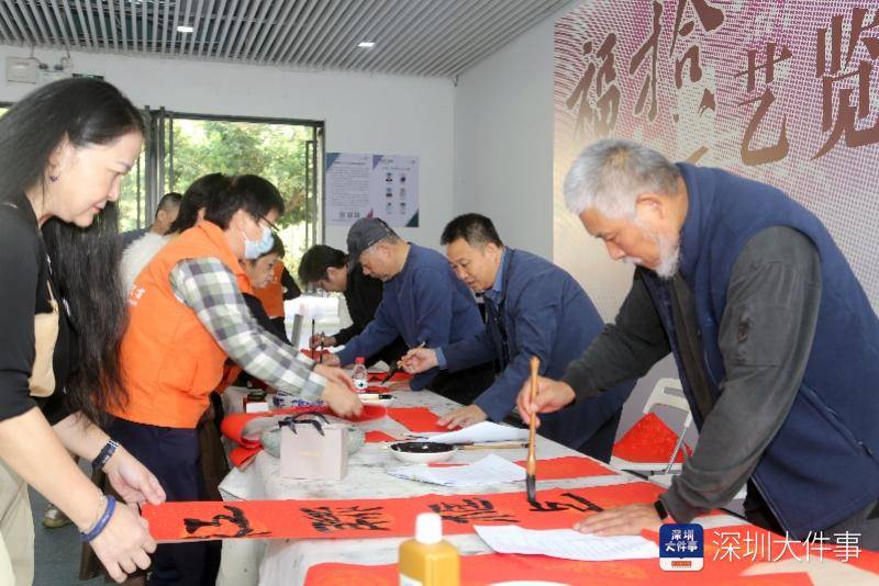 活动现场,深圳市美术家协会副主席、福田美术馆馆长张闯首先介绍了出席活动的嘉宾与书法名家,对到场市民表示热烈欢迎。随后与杨晓洋、陈俊宇、李静、海岩宿千、王子蚺五位名家一起凝神运笔,笔走龙蛇间,一副副寓意吉祥的春联、一个个饱满喜庆的“福”字跃然纸上。“春归大地人间暖,福降神州喜事多”,兼具艺术美感与新年祝福的书法作品,成为市民们心中最珍贵的新年礼物。