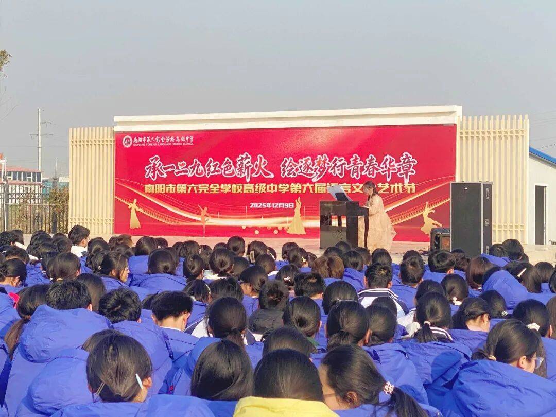 为赓续“一二·九”运动的爱国薪火,绽放新时代学子的青春风采,12月9日,南阳市第六完全学校高级中学第六届语言文化艺术节在全校师生的共同期盼中隆重启幕。本次活动由学生发展中心精心策划统筹,高一、高二年级学子携手登台献艺,用语言的魅力与艺术的表达,为现场师生呈现了一场兼具思想深度与青春活力的语言文化盛宴。