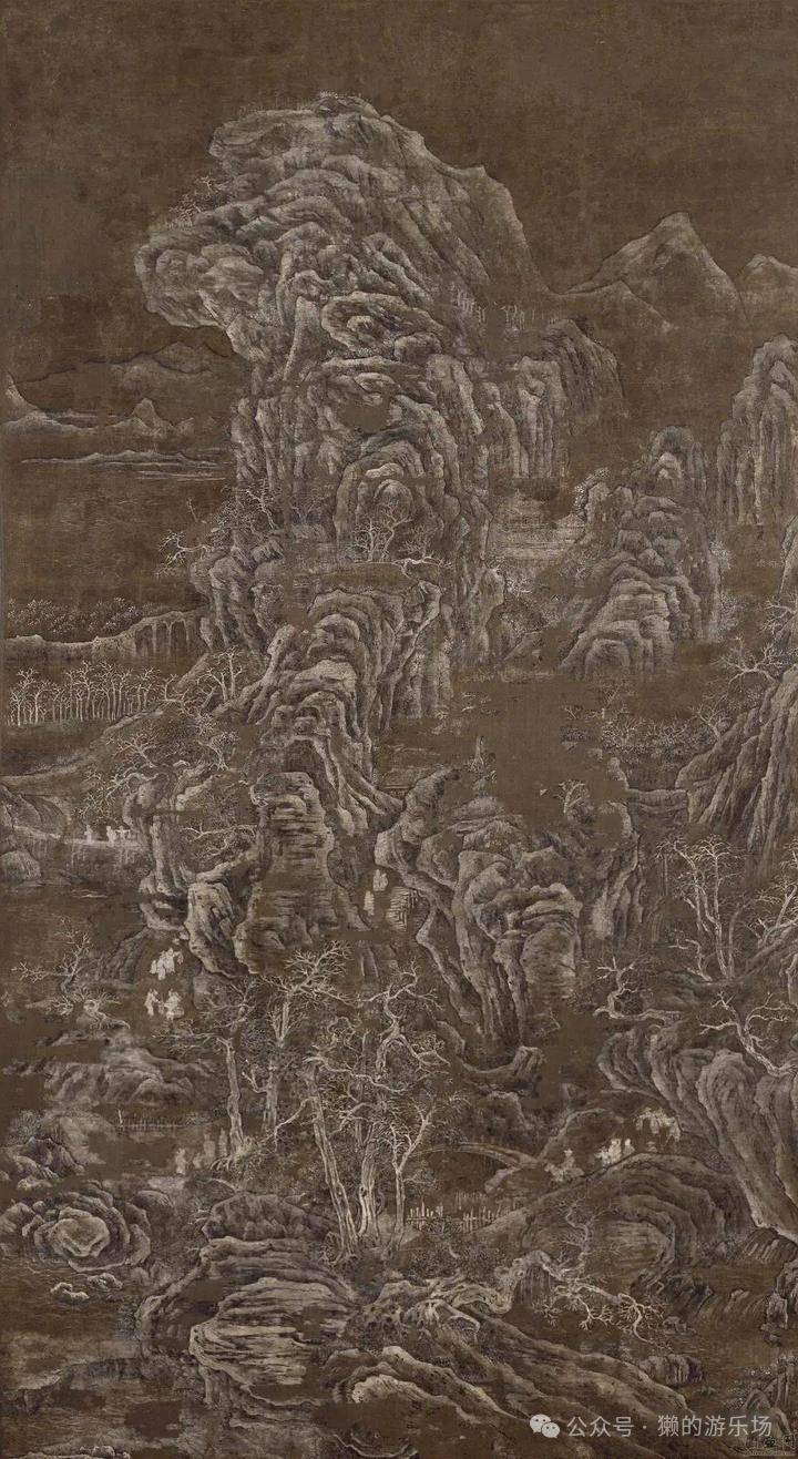 传为北方山水画派之祖荆浩的作品。这幅从古墓中发现的画作颇具争议,部分学者认定为真迹,也有观点认为是早期摹本。画家以苍浑笔墨绘雪中山水,S 形构图独特,主峰占据三分之二画面,尽显北方山水的庄严气势。